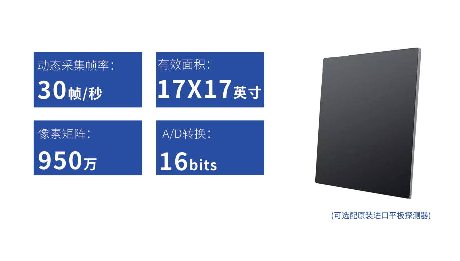 ● 17*17英寸的超高清像素動(dòng)態(tài)平板探測(cè)器,更大的視野范圍,無(wú)需移動(dòng)即可觀察整個(gè)動(dòng)態(tài)過(guò)程,避免拖尾、噪聲對(duì)圖像的影響;